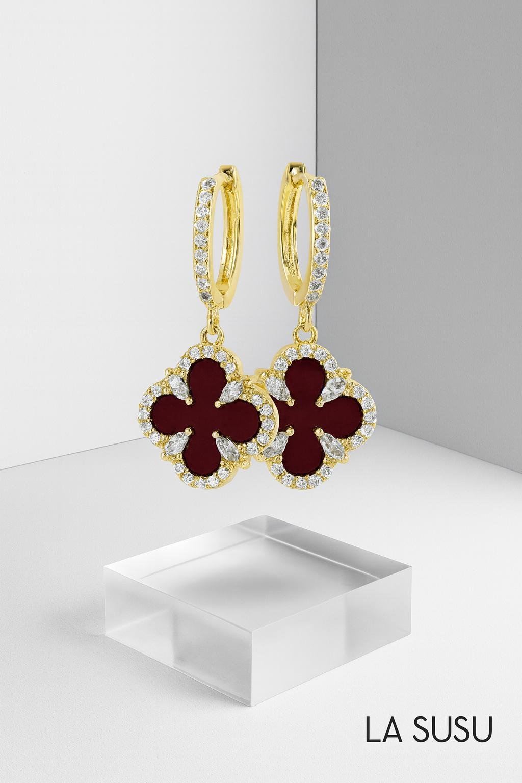 Cercei eleganți decorați cu cristale strălucitoare și motiv trifoi norocos